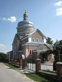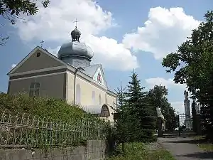 Зведена в 1740 році, як костел. У другій половині XIX ст. над нефом зведений декоративний розділ, а бічні фасади увінчані щипцями.[16]