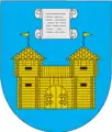Срібний мур з вежею в лазуровому полі. Герб Угнева (1642)