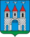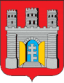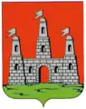 Герб Івано-Франківська (1938). У червоному полі на зеленій горі фортечна стіна з трьома вежами і відкритими ворітьми.gif)