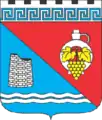 В червоному полі золотий ключ півострова Крим, що означає вхід до нього; в пояс серед зеленого поля - срібний Перекопський замок [12] Перекопська фортеця