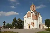 Громадськість міста виступала проти будівництва нового храму, мотивуючи це необхідністю збереження музейного комплексу Замкової гори, неможливістю відтворити церкву в оригінальному вигляді за браком джерел, а також спробою отримати матеріальний зиск з побудови церкви на місці історичної пам'ятки. Ще одним аргументом була необхідність детальнішого археологічного дослідження Замкової гори, оскільки у 1970-х роках тут було знайдено німецьке поховання часів Другої світової війни. Проте 1 липня 2011 року Білоцерківською міською радою було прийнято рішення про будівництво Храму Святого Великомученика Георгія Побідоносця[7]. Зведення храму було завершено у 2013 році. Церкву пофарбовано в білий колір, а місцями залишено непоштукатурені фрагменти цегляної кладки. Для внутрішнього розпису було обрано візантійський стиль, який традиційно використовували для оздоби культових споруд у XII столітті. У 2015 році, з нагоди Дня міста, було встановлено нічне підсвічування храму[8].