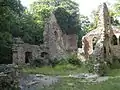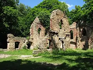 У 1794—1797 роках власник замку «Князь» Ганс Генріх VI фон Хохберг доручив архітектору Крістіану Тішбайну облаштувати околиці замку над потоком Пелчниця та перебудувати існуючі залишки руїн давнього замку на романтичні руїни для князя Ганса Генріха IV фон Хохберга[2]. Метою будівництва була інсценізація середньовічного оточення навколо замку «Князь». Після війни замок, підпалений радянськими військами, згорів влітку 1945 року[2]. До нашого часу збереглася штучна руїна з кінця XVIII століття з залишками головного замку із збереженим внутрішнім поділом[2]. При цьому в будівлі немає стель, а від замкової вежі збереглися лише фрагменти[2]. Також збереглися два ренесансні портали та частина муру давньої галереї, що веде до каплиці, від якої залишилися лише стіни та залишки прикапличної вежі[2].