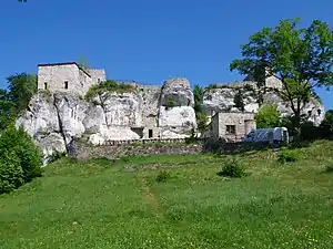 Зовнішні мури були побудовані з ретельно підібраного вапняку, а внутрішні частини були побудовані з битого каменю, залитого великою кількістю вапняного розчину. Зі сходу до скелі примикав господарський двір, який було захищено земляним насипом з овальною вежею та сухим ровом[5]. З півдня замок був захищений кам'яним муром, залишки якого можна простежити донині. Доступ до замку, через усю систему помостів і драбин, був лише пішохідним[5]. Незважаючи на зручне розташування та досить міцні фортифікації, які практично неможливо було здобути за допомогою середньовічних технік облоги, замок не відігравав в історії важливої ролі[5].