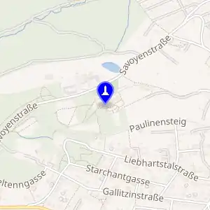 Замок Вільгельміненберг розташований на західній околиці Відня в 16 окрузі, Оттакрінг, на Галліцінберзі. Сьогодні він використовується як готель і розташований посеред парку площею 120 000 м², який плавно спускається в Лібхартшталь з південно-південно-східної сторони.