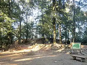 Від вершини гори (360 м) до її підніжжя було споруджено близько 270 малих і великих земляних укріплених площадок, частина з яких була оточена ровами і дерев'яними або кам'яними стінами. Замок поділявся на три укріплені двори — перший при вершині, третій у підніжжя, і другий між першим і третім, на схилах гори. Головні ворота, "паща тигра" (虎口), були розташовані у найбільшому за площею третьому дворі.