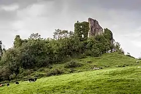 Замок мав зовнішні укріплення площею біля 1 акру у формі арфи з баштою на південному заході. Значна частина західної стіни завалилась в 1908 році. На північній стороні замку велика двоповерхова будівля. вважається, що це була каплиця, але ніяких доказів цьому немає. Внутрішні (верхні) споруди на північно-західній стороні замку складаються з двоповерхових споруд, що тягнуться вздовж західної стіни. Загальна їх площа 100 квадратних футів. Тут простежуються два періоди будівництва. На південній стороні замку збереглася вежа і сходи. Головна вежа була висотою біля 15 м і мала 5 поверхів, спіральні сходи. Ця частина замку датується XIV—XV століттями. На схід від замку була трьохповерхова резиденція, що була побудована в XVI столітті.