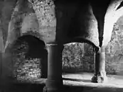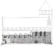 Уже до кінця XIII століття його стіни були споруджені з каменю. Був добре захищений, виконував роль фортеці. Зі сходу і півночі був оточений ровом, а з заходу і півдня — схилами висотою 20 метрів, які спускаються в затоку.