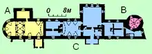 ![]() План комплексу церкви-ротонди та княжих палат Перемиського замку, нині Польща. Пам'ятка XI століття |