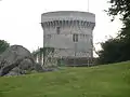 Кругла вежа донжон вибудована на початку 13 століття (приблизно в 1207 році) за часів короля Філіпа ІІ Августа, коли він разом із власною армією підкорив Нормандію і захопив замок. Її назвали вежа Талбот на честь англійського військового інженера Талбота, котрий відповідав за її ремонт і зміцнення в роки Сторічної війни. Аналогом вежі була така ж в середньовічній фортеці Лувра.