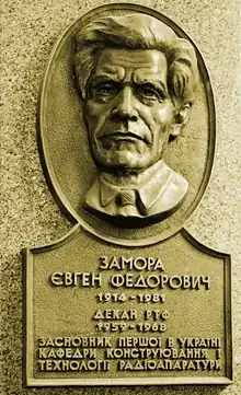 У 2000 році в корпусі РТФ був встановлений барельєф з меморіальною таблицею в пам’ять про Євгена Замору, засновника кафедри КТРА і декана РТФ.