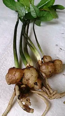 Підземні органи представлені кореневищем, що має вигляд округлої бульби, з верхівки якої відходить пучка відносно товстих і коротких коренів. Бульба і корінці мають колір від білого до блідо-коричневого. Вони містять не тільки запас поживних речовин, але і воду, яка необхідна рослині для того, щоб пережити посуху.