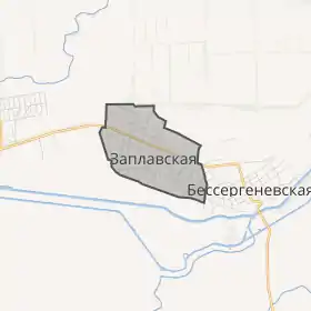 Станиця Заплавська розташова наж старим руслом Кадамовки, що раніше впадала до Аксаю, та на північний захід від Безсергенєвської станиці.