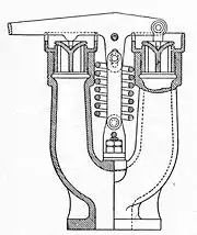 Для герметизації сідел великих діаметрів потрібні значні маси вантажів на довгих важелях, що може викликати сильну вібрацію пристрою. В цих випадках застосовуються корпуси, всередині яких перетин скидання середовища утворено двома паралельно розташованими сідлами, які перекриваються двома золотниками за допомогою двох важелів з вантажами. Таким чином, в одному корпусі монтуються два паралельно працюючих затвори, що дозволяє зменшити масу вантажу і довжину важеля, забезпечуючи нормальну роботу клапана.