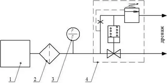 - 4. Для запобіжних клапанів, що встановлюються на трубопроводах на стороні меншого тиску після регуляторів тиску — з умови повного відкриття регулюючого клапана та відсутності витрати після нього (приймається з максимально заданої продуктивності); на газорозподільних станціях — з умови 0,01 максимальної продуктивності регулюючого клапана.