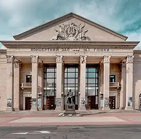 У 1955 році біля входу у концертний зал встановлено пам’ятник видатному композитору, засновнику загальнослов’янської музичної культури та класичної музики Михайлу Івановичу Глінці (скульптор А. Страхов). І наразі, концертний зал іменіМ.І.Глінки Запорізької обласної філармонії - один із кращих концертних залів Україниза акустичними властивостями.
