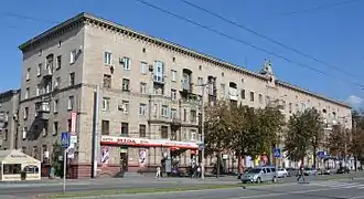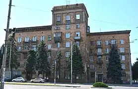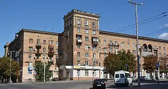 Будинок, що формує в'їзд до 6-го селища від греблі ДніпроГЕС (проспект Соборний, 193)