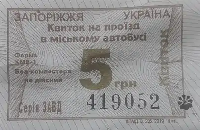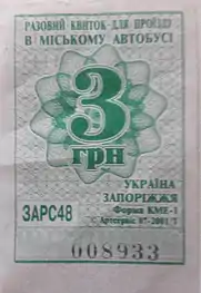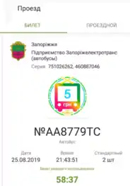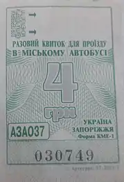 - Разові квитки у муніципальних автобусах міста Запоріжжя