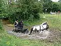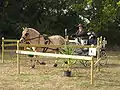 - Марафон: вправа на час, складається з різних частин, кожна з яких дозволяє оцінювати екіпаж на пересіченій місцевості його швидкість, керованість, потужність коней. Є частини марафону по дорогах з вільним алюром (способом пересування коней), або передбаченим алюром (ступа, клус), інші частини марафону обладнані штучними або природними перешкодами від 5 до 8 де час фіксується окремо.