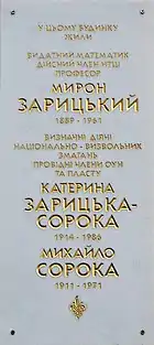 На честь українського математика Мирона Зарицького та його доньки Катерини Зарицької у 1991 році названа вулиця Зарицьких у Галицькому районі Львова (до 1991 р. — вул. Воровського); родина Зарицьких мешкала на цій вулиці в будинку № 27.[7]