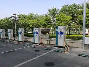 Зарядна станція — елемент міської інфраструктури, що надає електроенергію для зарядки акумуляторного електротранспорту, такого як електромобілі, електробуси, електроскутери, електросамокати, гіроскутери, сегвеї, електровелосипеди і т. п.