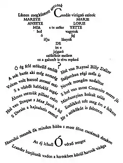 Присутні три типи рим: перехресні рими (ABAB), кільцеві рими (ABBA), парні рими (AABB).