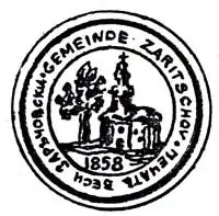 На печатці села зображена церква (мабуть, церква села), поруч високе дерево.