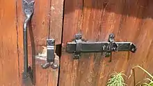 Вдосконалений засув, який можна відперти ззовні найпростішим ключем, відомий як «бганий замок»[5].