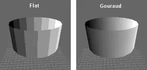 Якщо кожна пласка грань має один постійний колір, визначений з урахуванням відображення, то різні кольори сусідніх граней дуже помітні та поверхня виглядає саме як багатогранник. Здавалося б, цей дефект можна замаскувати за рахунок збільшення числа граней при апроксимації поверхні. Але зір людини має здатність підкреслювати перепади яскравості на кордонах суміжних граней — такий ефект називається ефектом смуг Маху. Тому для створення ілюзії гладкості потрібно набагато збільшити число граней, що призводить до істотного уповільнення візуалізації — чим більше граней, тим менше швидкість малювання об'єктів.