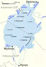 Затока Шевченка на карті Аральського моря(цифра 1)