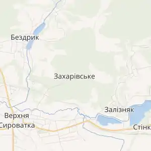 Селище Захарівське знаходиться на відстані 2 км від річок Бездрик і Сироватка. На відстані 1 км розташоване село Верхня Сироватка. Село оточене великим лісовим масивом (дуб).