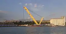 - Перегрузка гусеничного крана плавучим краном. Блог крана. 28 жовтня 2009. Процитовано 6 лютого 2012.