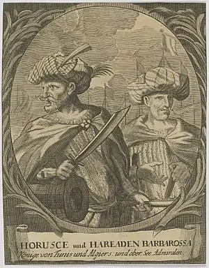 ![]() Арудж і Хизир Барбаросси. Середньовічна гравюра Арудж і Хизир Барбаросси. Середньовічна гравюра | |||||||