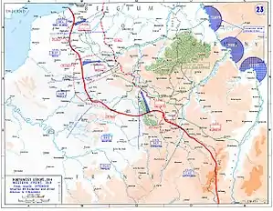 У Арденнській битві 3-тя і 4-та французькі армії були розбиті 5-ю і 4-ю німецькими арміями, у боях біля Шарлеруа і в операції біля Монса британці і 5-та французька армія зазнали поразки від 1-ї, 2-ї та 3-ї німецьких армій. 20-22 серпня 1-ша і 2-га французькі армії, що почали 14 серпня наступ в Лотарингії, були розбиті 6-ю і 7-ю німецькими арміями[51].