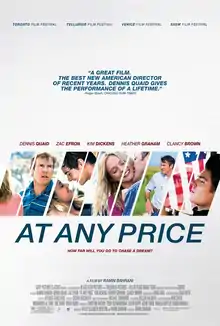 «За будь-яку ціну» (англ. At Any Price) — американська драма режисера Раміна Бахрані про батька, який мріє, що його сімейний бізнес послужить зближенню з сином. Але син не бажає долучатися до сімейної справи, а мріє стати гонщиком. У головних ролях - Денніс Квейд і Зак Ефрон.