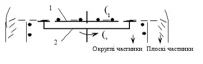 Для ефективної роботи грохота товщина пластинки слюди h не повинна перевищувати її максимальне значення hmax, яке, в свою чергу, повинно бути меншим від розміру щілини грохота dc, тобто hmax< dc.