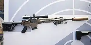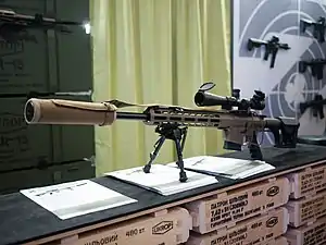 Цівка жорстко спирається на ствольну коробку. Для зниження рівня звуку та спалаху під час пострілу гвинтівка може оснащуватися глушником. Вона забезпечена прикладом MagPul PRS з регульованою щокою і висувним потиличником.