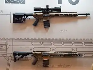 В 2018 році для заміни в Збройних силах України морально і фізично застарілої снайперської гвинтівки Драгунова прийняли на озброєння вітчизняну гвинтівку UAR-10. Самозарядну напівавтоматичну снайперську гвинтівку UAR-10 можна вважати аналогом американської автоматичної гвинтівки AR-10[1].