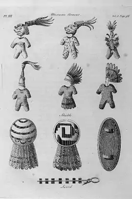 Був плоским, круглої або овальної форми. Його робили з бамбука, очерету або вогнестійкого дерева, підбивали бавовною, а зовні міг вкриватися шкірою, черепаховим панциром, прикрашатися мозаїкою з каменів або пір'я, а також золотими, мідними або срібними деталями. З внутрішньої сторони щит мав прямокутну підкладку під руку і два ременя-енарма для тримання на руці. За повідомленнями іспанців деякі щити були настільки міцні, що їх неможливо було пробити пострілом з арбалетах.