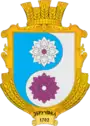 В щиті, розтятому зігнуто у формі оберненої літери «S» на лазур і срібло, дві водяні лілеї в стовп: срібна з пурпуровою серединкою в лазуровому, пурпурова з срібною серединкою в сріблі. Щит вписаний в декоративний картуш і увінчаний золотою сільською короною. Унизу картуша напис «ЗБРУЧІВКА» і дата «1702».