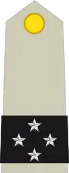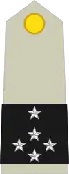 Orgeneral | Korgeneral | Tümgeneral | Tuğgeneral | Albay | Yarbay | Binbaşı | Yüzbaşı | Üsteğmen | Teğmen | Asteğmen | Harbiyeli | |||||||||||||