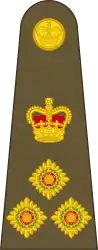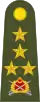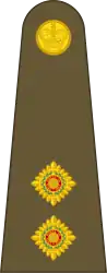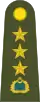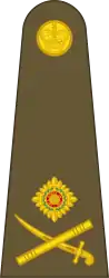 | General | Generalløjtnant | Generalmajor | Brigadegeneral | Oberst | Oberstløjtnant | Major | Kaptajn | Premierløjtnant | Løjtnant | Sekondløjtnant | Værnepligtig Sergent | |||||||||||||||
