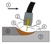 Зварювальник, стежачи за тим, щоб дуговий проміжок не змінювався, веде електродом уздовж зістикованих країв зварюваних деталей. При проходженні електрода утворюється розплавлена зварювальна ванна з основного металу і металу електрода, який потім одразу ж кристалізується. В результаті однократного проходження дуги по контуру зварювання утвориться зварювальний валик.