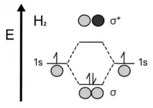 Класичним випадком є утворення двоатомної молекули водню H2 з атомів гідрогену у яких атомні орбіталі є ідентичними. При утворенні молекули дигідрогену H2 можливі два сценарійї утворення МО: накладання валентних орбіталей 1s, що знаходяться у однаковій фазі і що приводить до утворення (концентрування) електронної густини між ядрами атомів, або якщо АО різні за фазами, то це приведе до розпорошення (розпушування) електронної густини навколо атомів. Зв'язуючі орбіталі (σзв(1s)) приводять до утворення стабільної двоатомної молекули водню. Два електрони 1s із двох атомів гідрогену разом заповнюють зв'язуючу МО молекули водню. Розпушуючі орбіталі (σ*(1s)) — нестабільні і не приводять до зв'язування обох протонів, що мають однаковий заряд, оскільки електронна густина між ними у цьому випадку є незначною[3]. У другому випадку необхідна також і додаткова енергія, щоби тримати обидва атоми за допомогою розпушуючої орбіталі.