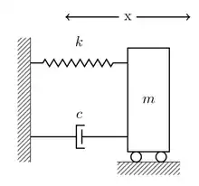 Ідеальна система маса-пружина-демпфер з масою m, коефіцієнтом жорсткості k і в'язким демпфером з коефіцієнтом в'язкості c піддається коливальній силі