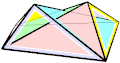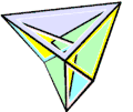 - Кілька разів перегніть папір по суцільним і пунктирним відрізкам, що залишилися на розгортці. Виконуючи наступні дії слід надавати поверхні таку форму, щоб суцільні відрізки були «гірськими хребтами» (тобто виступали з многогранника назовні), а пунктирні відрізки були «долинами» (тобто вдавалися б всередину многогранника).