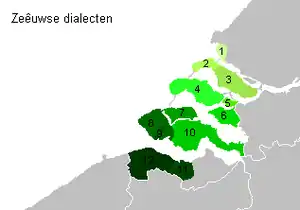 Зеландський діалект є в певному сенсі проміжним між голландським говором на півночі і західнофламандськими говорами на півдні.
