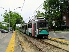 Хоча на мапах MBTA лінія позначається як лінія метро, вона завжди обслуговувалася трамваями. У 2018 році використовуються моделі двох виробників; Kinki Sharyo та AnsaldoBreda, але в цьому році почнуть надходити нові трамваї виробництва CAF USA.