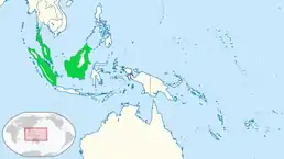 Вид поширений в Південно-Східній Азії: в Індонезії (Суматра, Калімантан), Брунеї, Сінгапурі, Малайзії (континентальній та острівній), на півдні Таїланду та М'янми (Танінтаї).