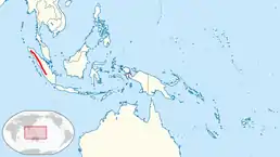 Ендемік Суматри. Поширений в Барисанських горах від центрального Ачеху до національного парку Букіт Барісан Селатан.
