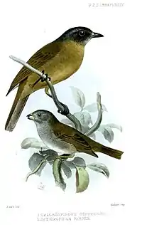 | Chlorospingus ochraceus Hemispingus melanotis ochraceus Sphenopsis melanotis ochracea Sphenopsis ochraceus Hemispingus ochraceus | ||||||||||||||||